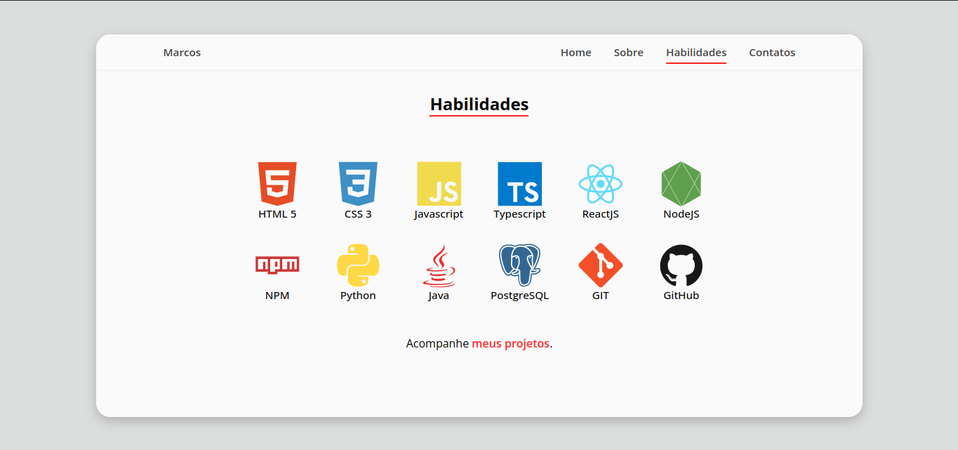 Área visual que apresenta as tecnologias que o usuário domina.